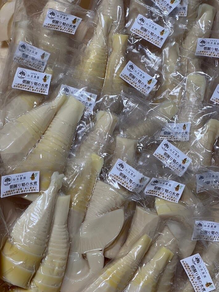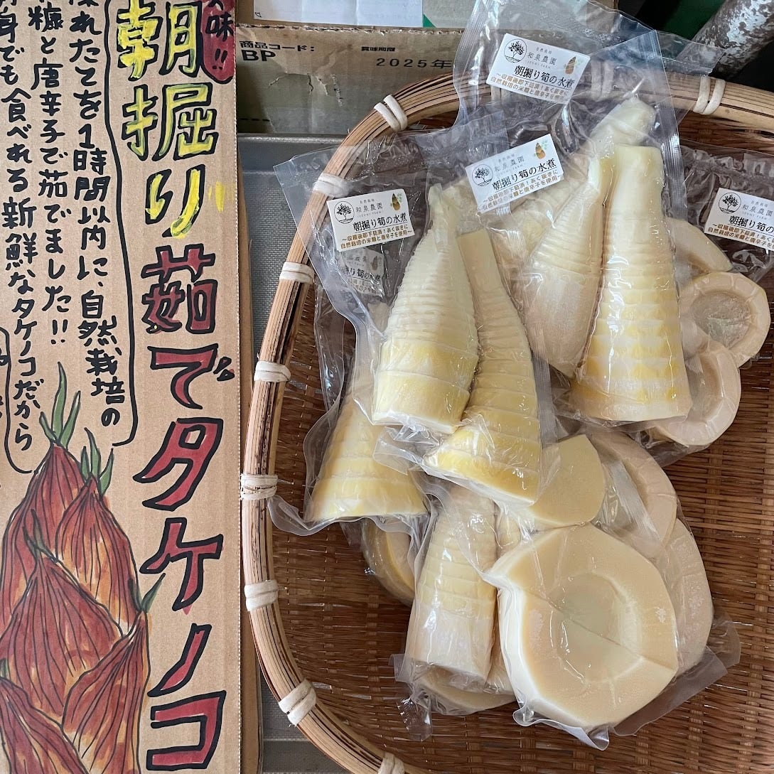 朝採れの自生の筍をすぐに自然栽培の米糠と一緒に茹であく抜きをして、真空パックにしました。鮮度抜群でクセがなく筍ご飯や炒め物や煮物におすすめです。