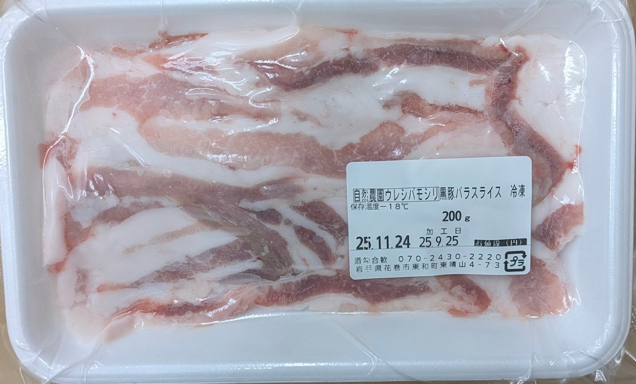 [冷凍便]黒豚のバラスライス200g 岩手県 ウレシパモシリ自然農園