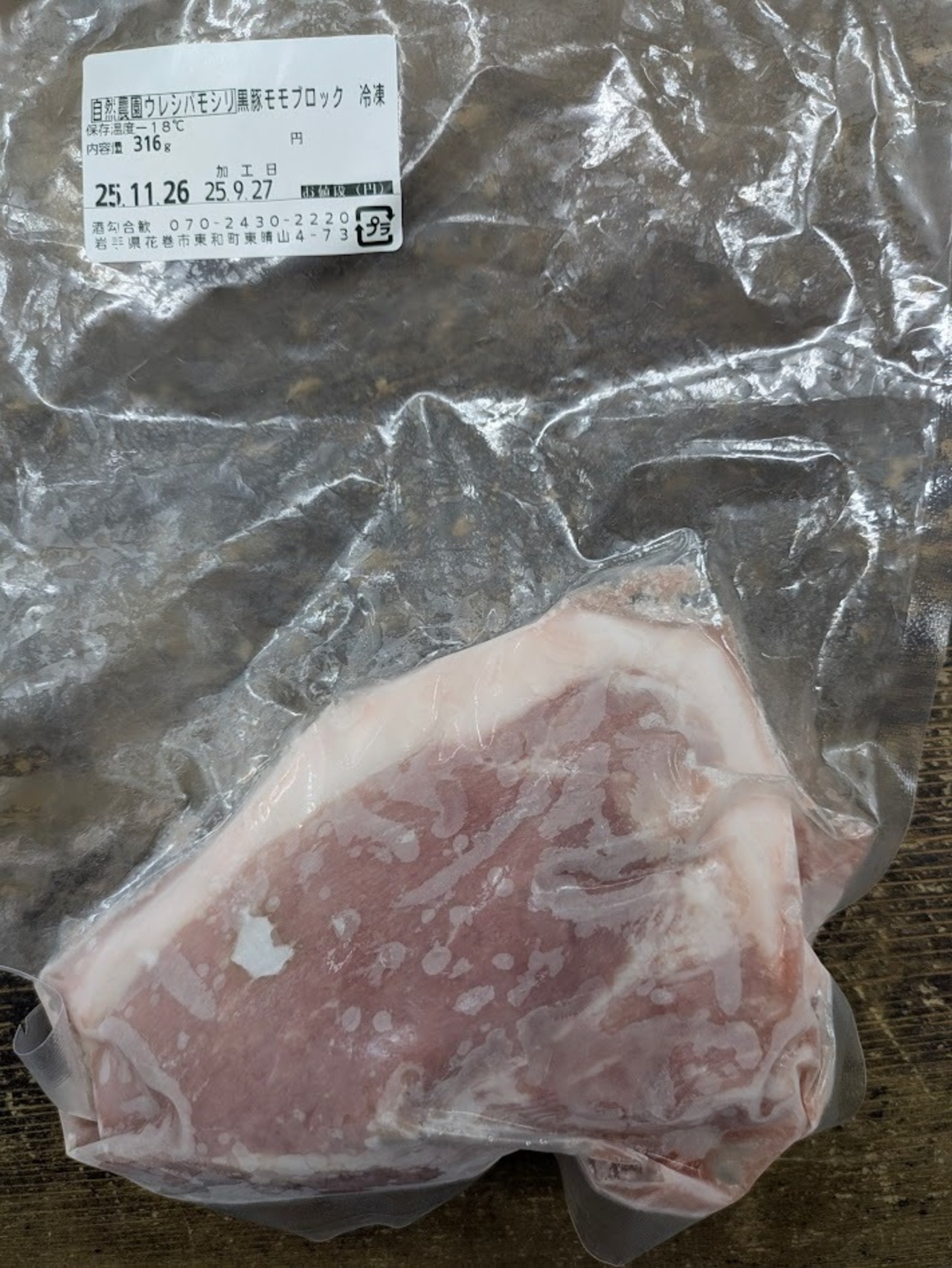 [冷凍便]黒豚のモモブロック 316g 岩手県 ウレシパモシリ自然農園
