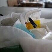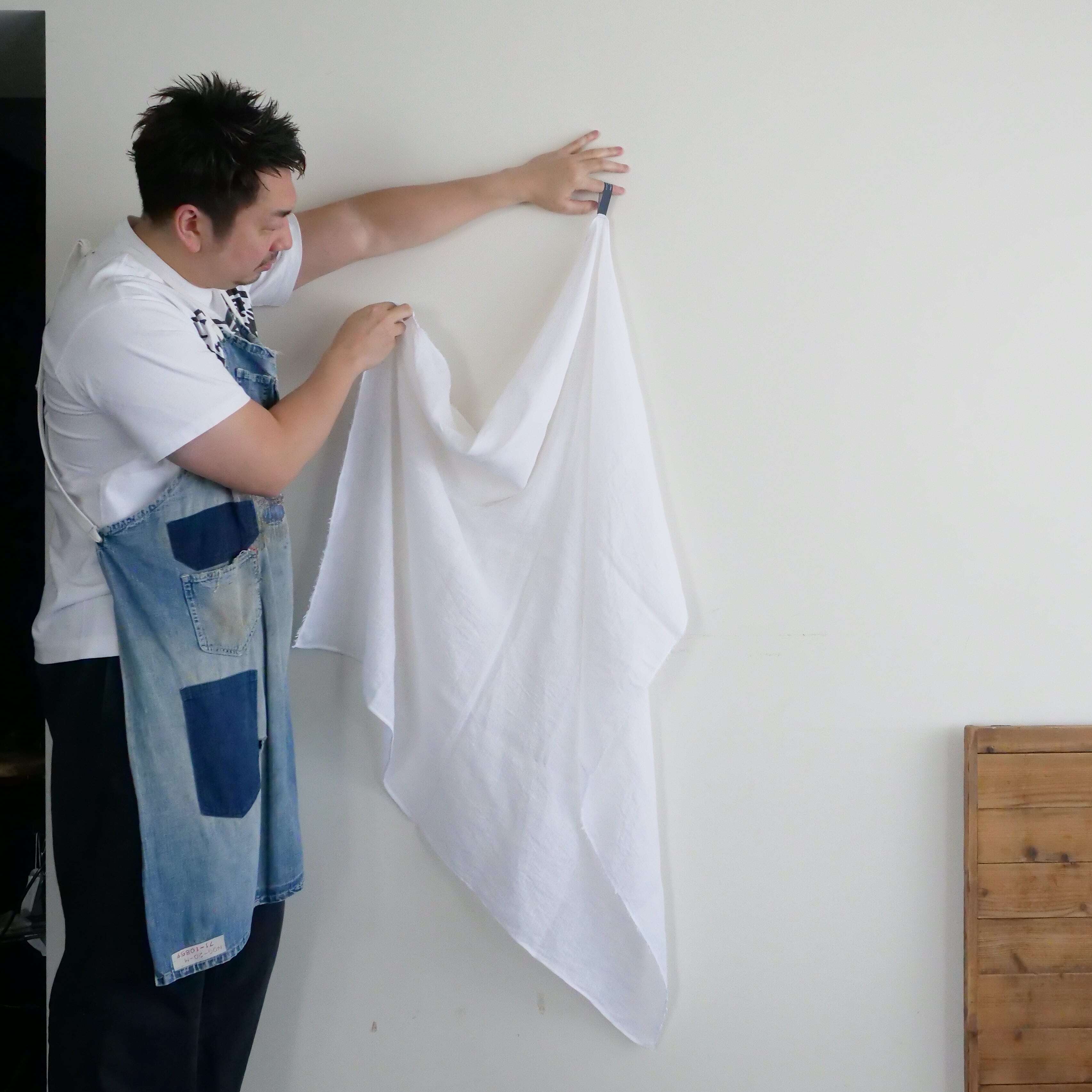 *リネンガーゼの特徴として、使いはじめの毛落ちが多いです。10回洗うくらいまでは、細かな繊維が抜けて、床や作業台の上にホコリが溜まりやすいことを了承ください。