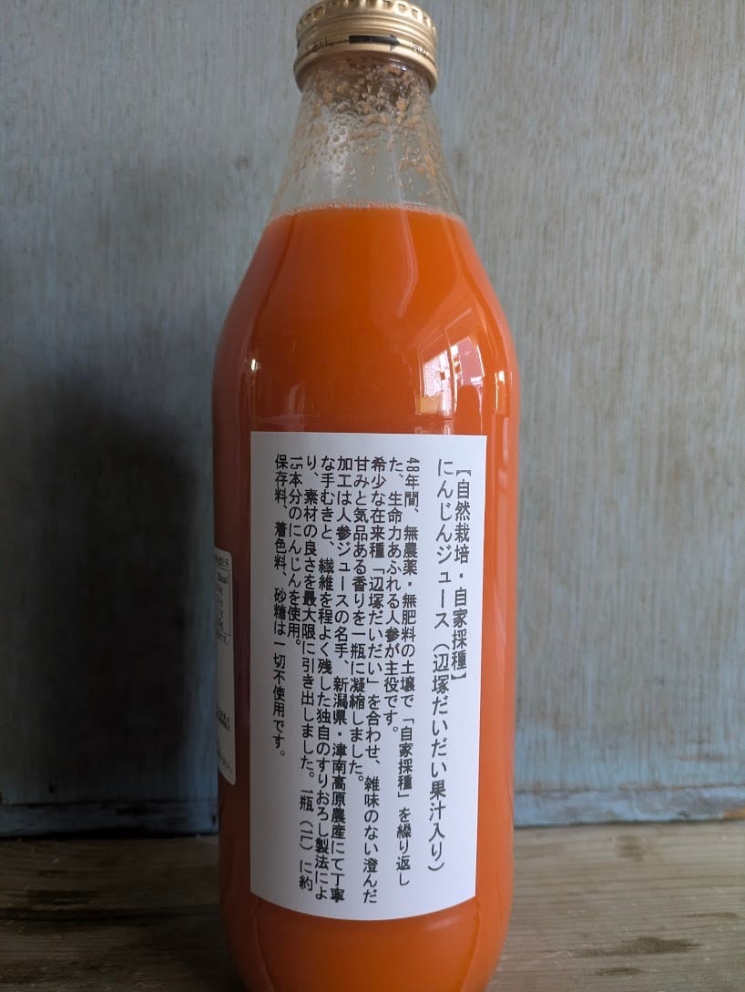 原材料: にんじん(千葉県産・自然栽培・自家採種)、辺塚だいだい(鹿児島県産・自然栽培・在来種)