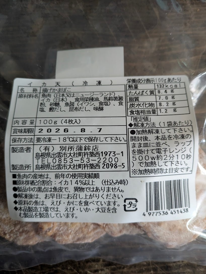 【クール便】イカ天 100g(4枚) 島根県 別所蒲鉾