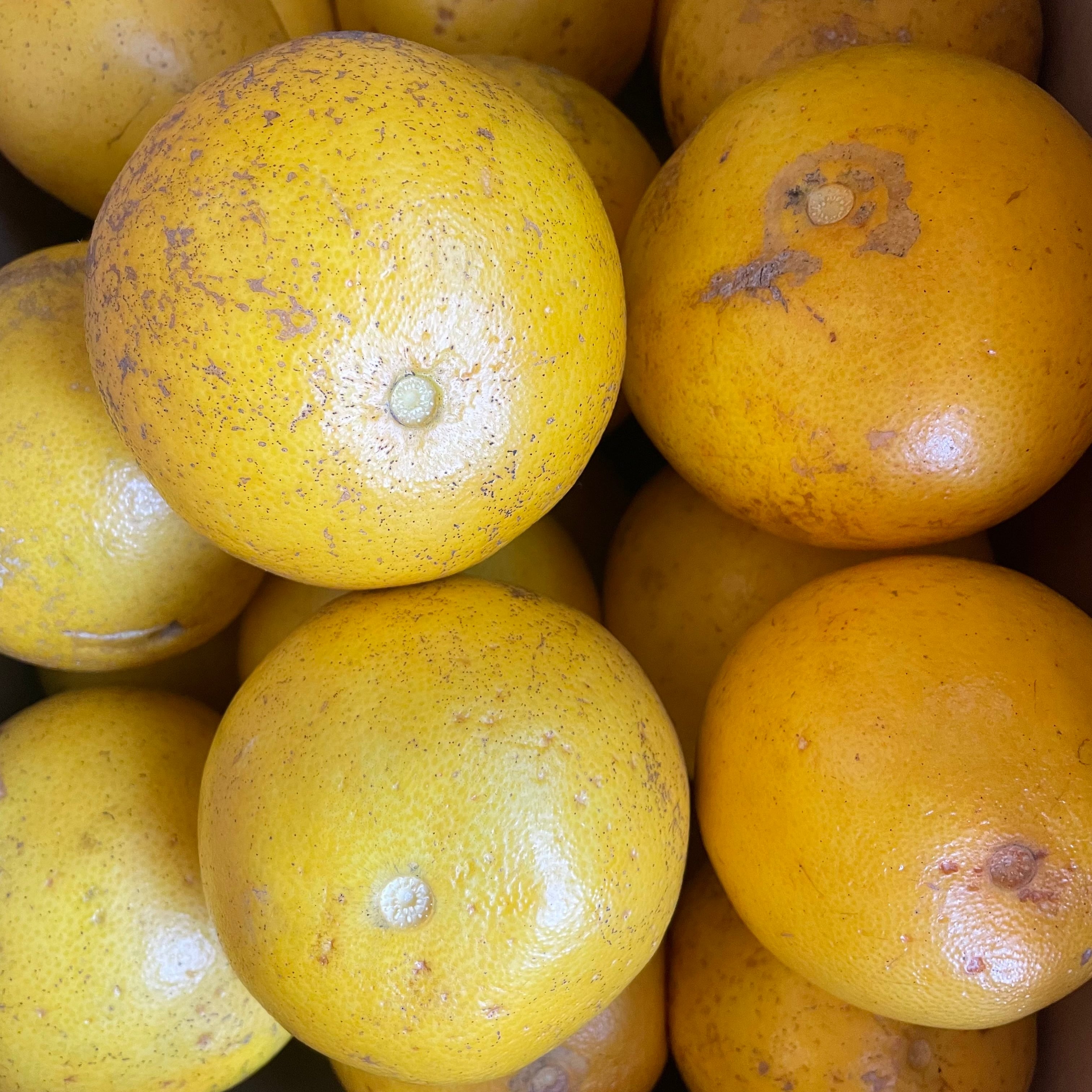 酸味際立つグレープフルーツ。果汁たっぷりです。サラダ、ドレッシングの果汁にもおすすめです。表皮に傷などありますが中身に問題はございません。たくましく育った証しと受け入れてください。