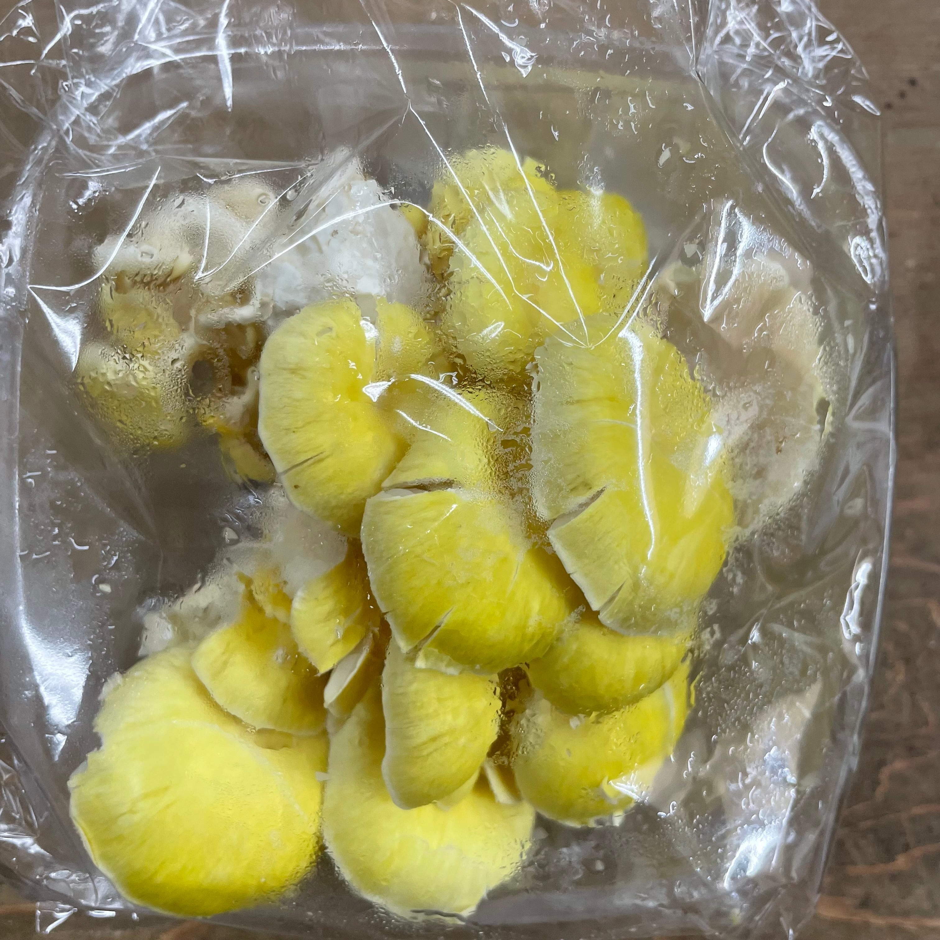 黄色で可憐な姿のひら茸の仲間です。北海道などの山林にも自生しています。しっかりとした食感で、出汁にもなる様な特有の風味があり、煮付けや鍋料理に向いています。