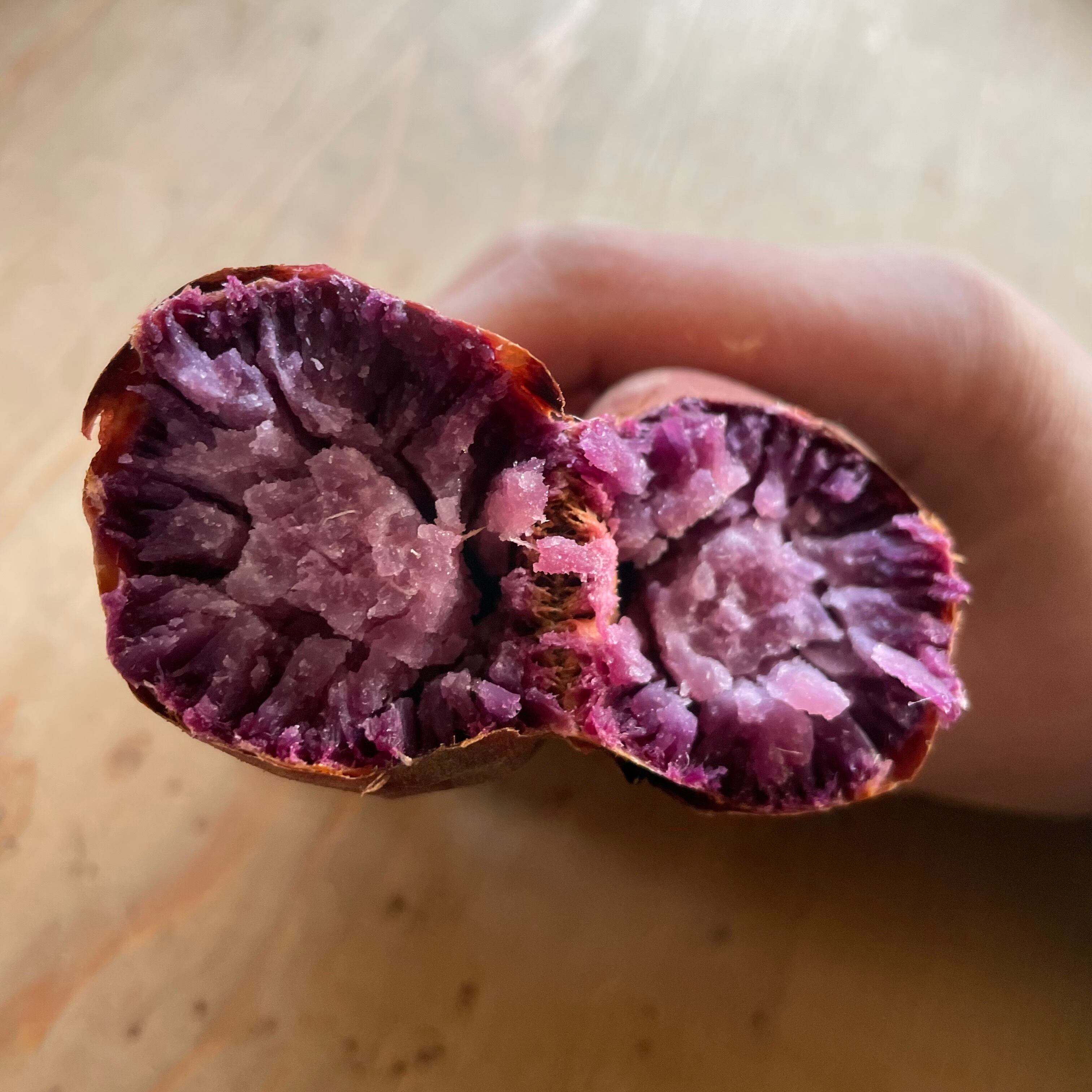 果肉が紫色のさつまいもです。糖度十分。皮は濃い赤紫色。