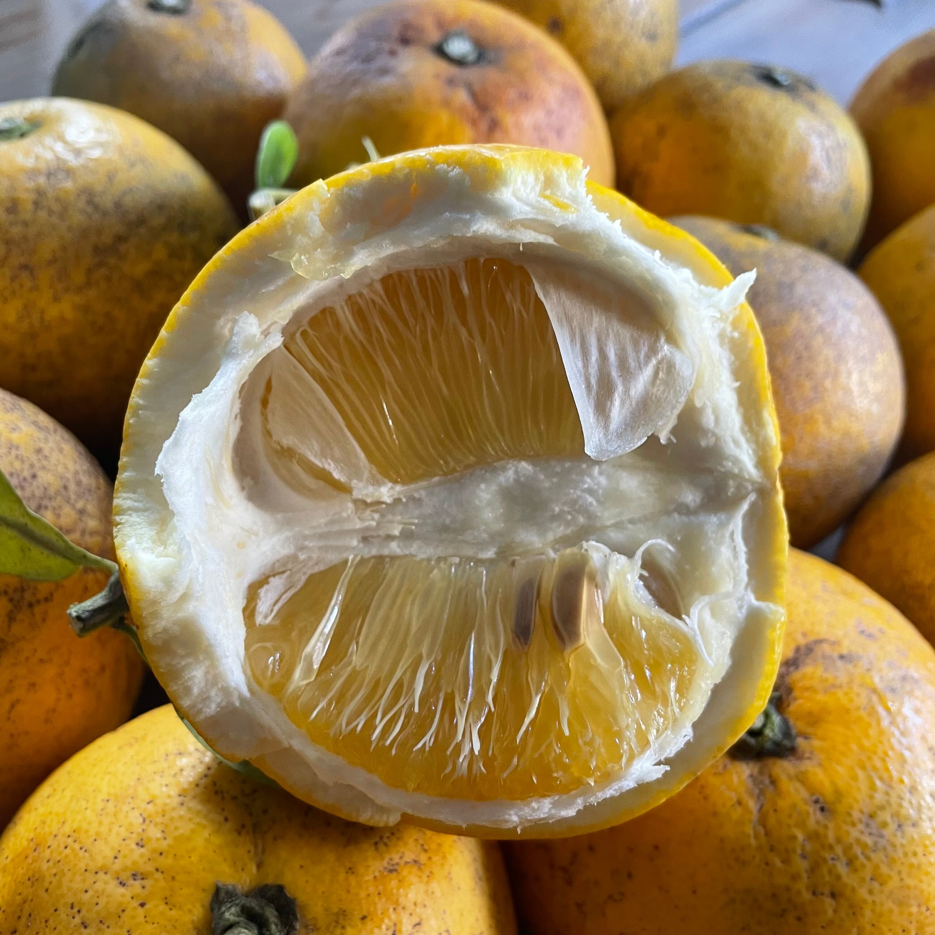江戸時代、安政から続くブンタン類の一種。大玉で酸味はほとんど無く白綿まで美味しい。汁気が少なくサクサク感が素晴らしい。粒がほどけるので、サラダやちらし寿司などに。皮は厚くピール漬けにもむきます。とっても美味しいです~。
