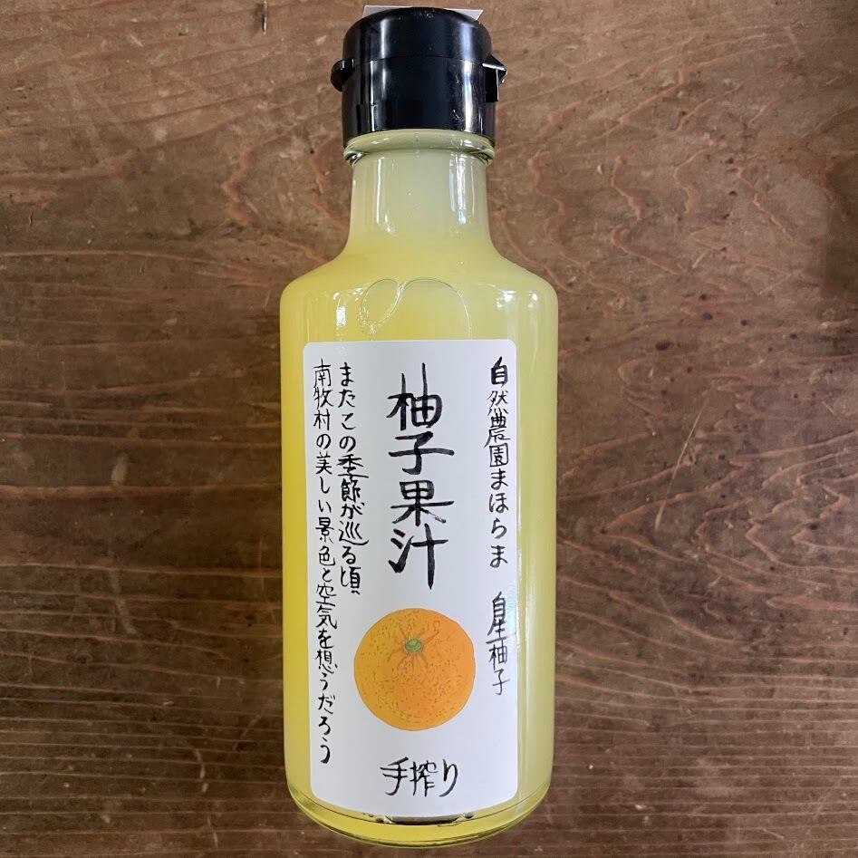 南木村の自生の柚子を一つ一つ手搾りで丁寧に黄色と香りを閉じ込めました。